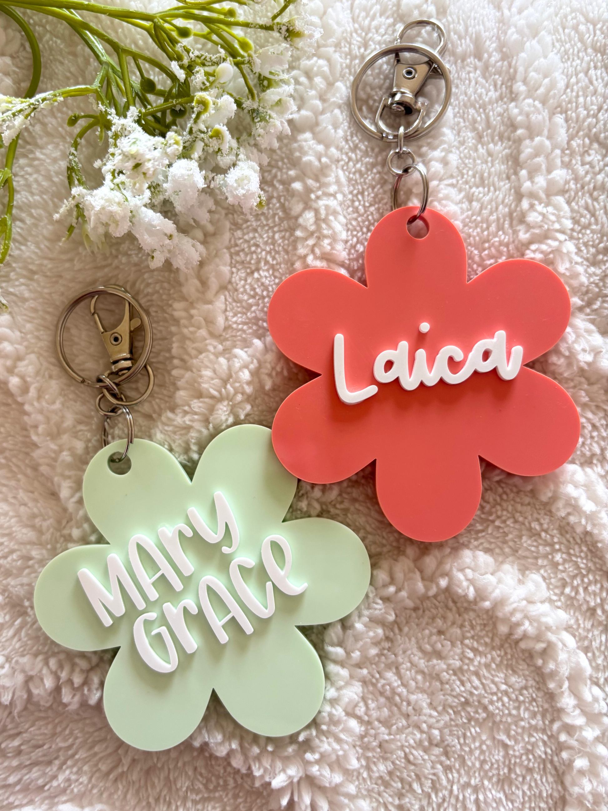 Carry a piece of yourself wherever you go with our personalized name keychain! Made with premium acrylic, this custom keychain features your name in a cutesy flower design. Perfect for keys, bags, or backpacks, it's a thoughtful gift or a lovely treat for yourself. Choose from various colors and fonts to match your vibe!